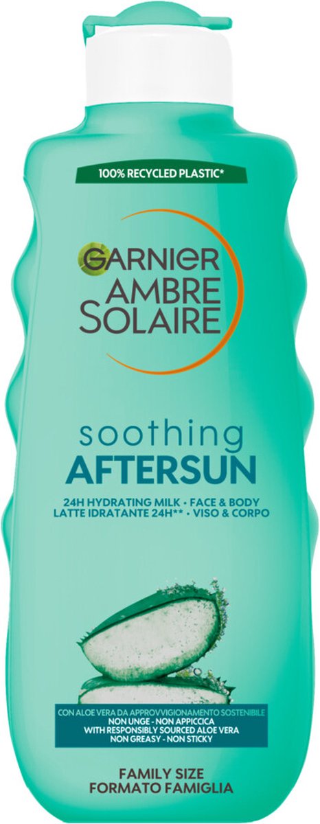 De Garnier Ambre Solaire Hydraterende en Verfrissende Aftersun Melk is een verfrissende lotion die de huid kalmeert en verzacht na een dag in de zon. Het is verrijkt met verschillende natuurlijke ingrediënten, zoals aloë vera, die de huid helpen herstellen en verzachten. De lotion is niet vettig en trekt binnen enkele minuten in de huid. Bovendien heeft het een verfrissende geur, waardoor de huid heerlijk verfrist aanvoelt. De lotion is geschikt voor alle huidtypes en zorgt voor een zijdezachte huid. De Garnier Ambre Solaire Hydraterende en Verfrissende Aftersun Melk is de perfecte keuze na een dag in de zon. De lotion hydrateert de huid tot 24 uur en heeft een frisse verfrissende geur. Het is rijk aan natuurlijke ingrediënten zoals aloë vera en bevat geen parabenen. Het is makkelijk aan te brengen, trekt binnen enkele minuten in de huid en is geschikt voor alle huidtypes. Met deze lotion zorg je ervoor dat je huid heerlijk zacht en gehydrateerd aanvoelt na een dag in de zon.